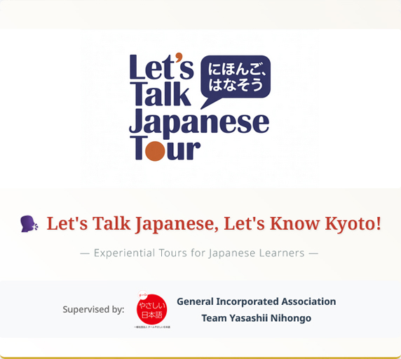 | 1 Guided by Certified "Team Yasashii Nihongo" Guides | Our guides have completed training supervised by the General Incorporated Association "Team Yasashii Nihongo". These professionals specialized in supporting Japanese learners will accompany you, offering support with appropriate vocabulary and expressions tailored to your skill level. |
